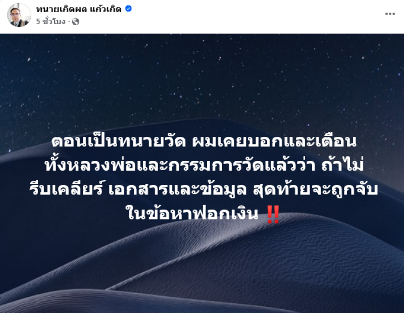 ตอนเป็นทนายวัด ผมเคยบอกและเตือนทั้งหลวงพ่อและกรรมการวัดแล้วว่า ถ้าไม่รีบเคลียร์ เอกสารและข้อมูล สุดท้ายจะถูกจับ ในข้อหาฟอกเงิน ท่ามกลางชาวเน็ตต่างเข้ามาแสดงความคิดเห็นกันอย่างมาก