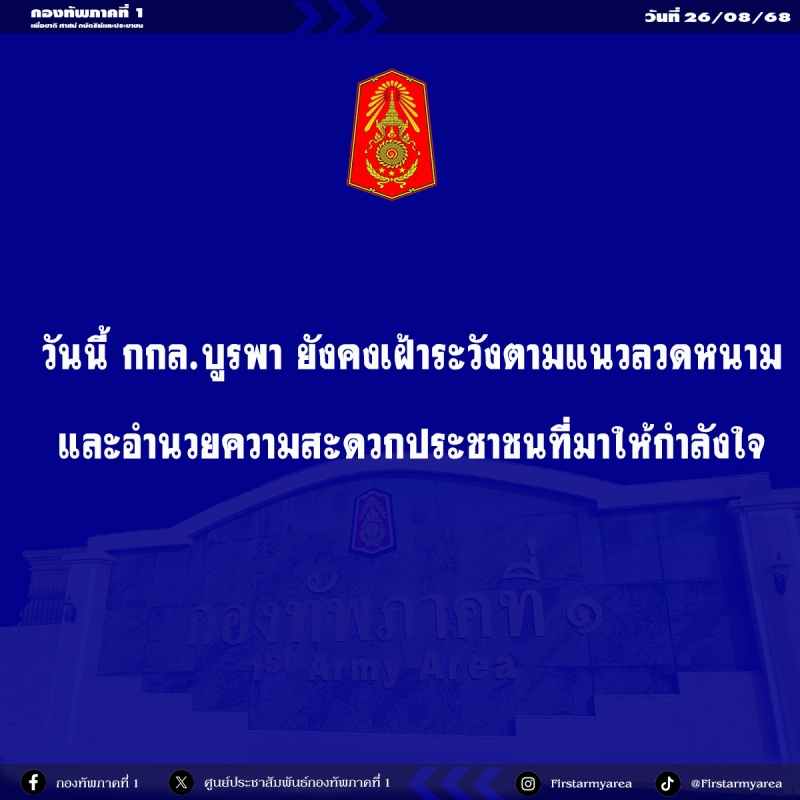 กองทัพภาคที่ 1 ยืนยันในศักดิ์ศรีการรักษาอธิปไตย รักษาผลประโยชน์ของชาติ ความปลอดภัยในชีวิตและทรัพย์สินของประชาชน