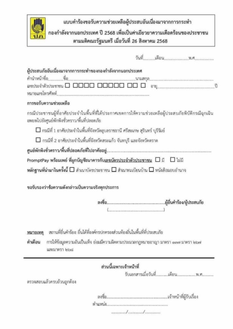 วันที่ 29 ส.ค. 68 ทาง อนุวัต จัดให้ ได้ออกมาเผยว่า วันนี้หลาย พื้นที่ในจังหวัด ที่ได้รับผลกระทบกับการปะทะไทย-กัมพูชา เปิดให้ลงทะเบียนรับเงินเยียวยา หรือ เงินช่วยเหลือผู้ประสบภัยจากการกระทำของกองกำลังภายนอกประเทศ