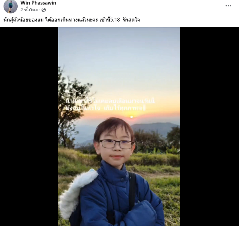 โดยระบุว่า นักสู้ตัวน้อยของแม่ ได้ออกเดินทางแล้วนะคะ เช้านี้ 5.18 รักสุดใจ โดยมีแฟนๆที่ติดตามต่างเข้ามาคอมเมนต์แสดงความเสียใจกันอย่างมาก