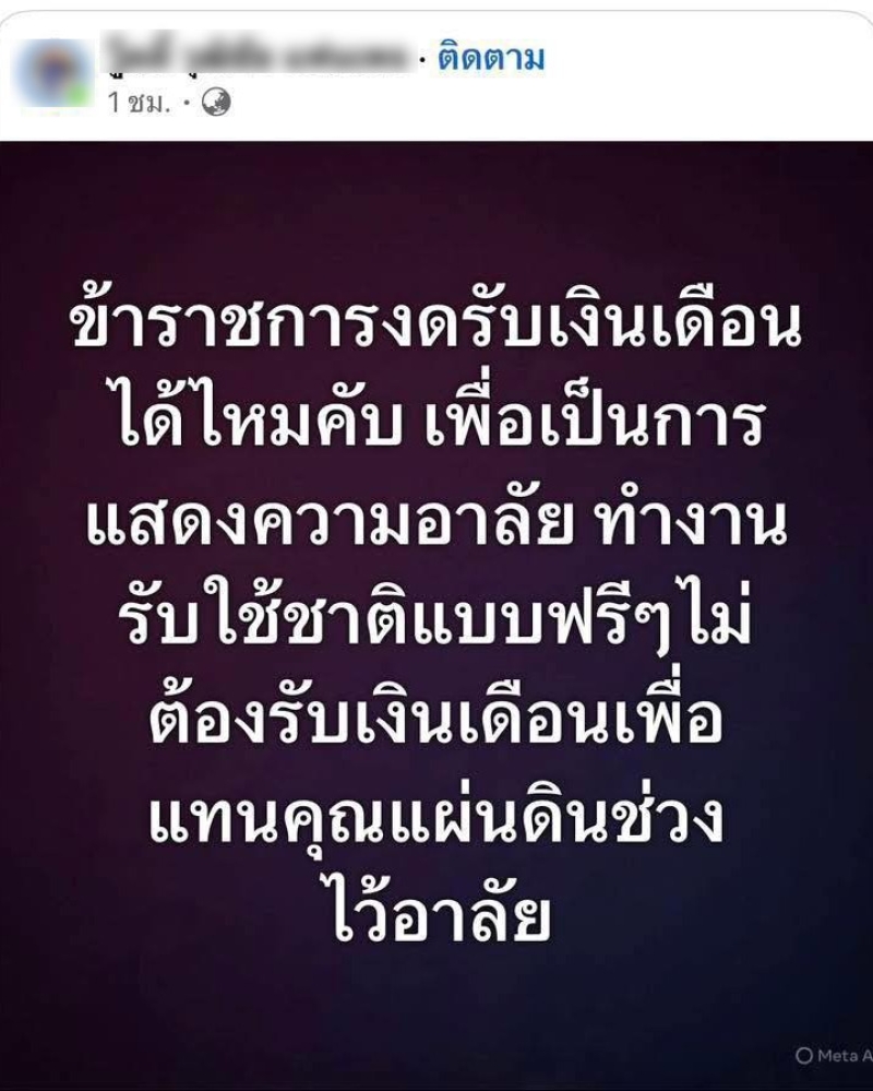ทำเอาโซเชียลต่างงงกันไม่น้อยเลยทีเดียวเมื่อหมอลำซิ่งรายหนึ่งได้ออกมาโพสต์ข้อความระบุว่า ข้าราชการงดรับเงินเดือนได้ไหมคับ เพื่อเป็นการแสดงความอาลัย ทำงานรับใช้ชาติแบบฟรีๆ ไม่ต้องรับเงินเดือน เพื่อแทนคุณแผ่นดินช่วงไว้อาลัย