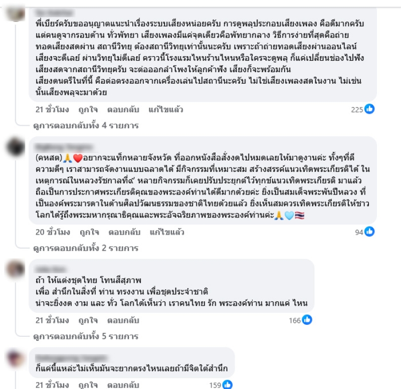6.เชิญชวนคนไทย คนต่างชาติร่วมใส่ชุดไทยพระราชนิยมทั้ง 8 แบบ (ติดริบบิ้นดำ) และการขอความร่วมมือผู้เข้าร่วมงานสวมเสื้อผ้าคุมโทนไม่ฉูดฉาด