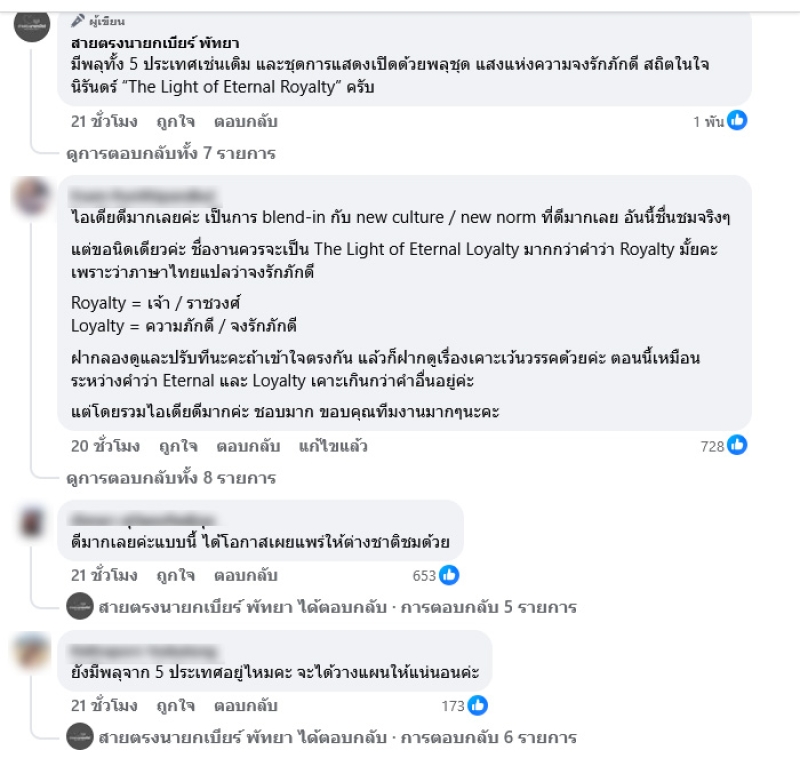 1.ปรับเพิ่มชื่องาน เทศกาลพลุนานาชาติเมืองพัทยา ชื่อว่า แสงแห่งความจงรักภักดี สถิตในใจนิรันดร์ The Light of Eternal Loyalty