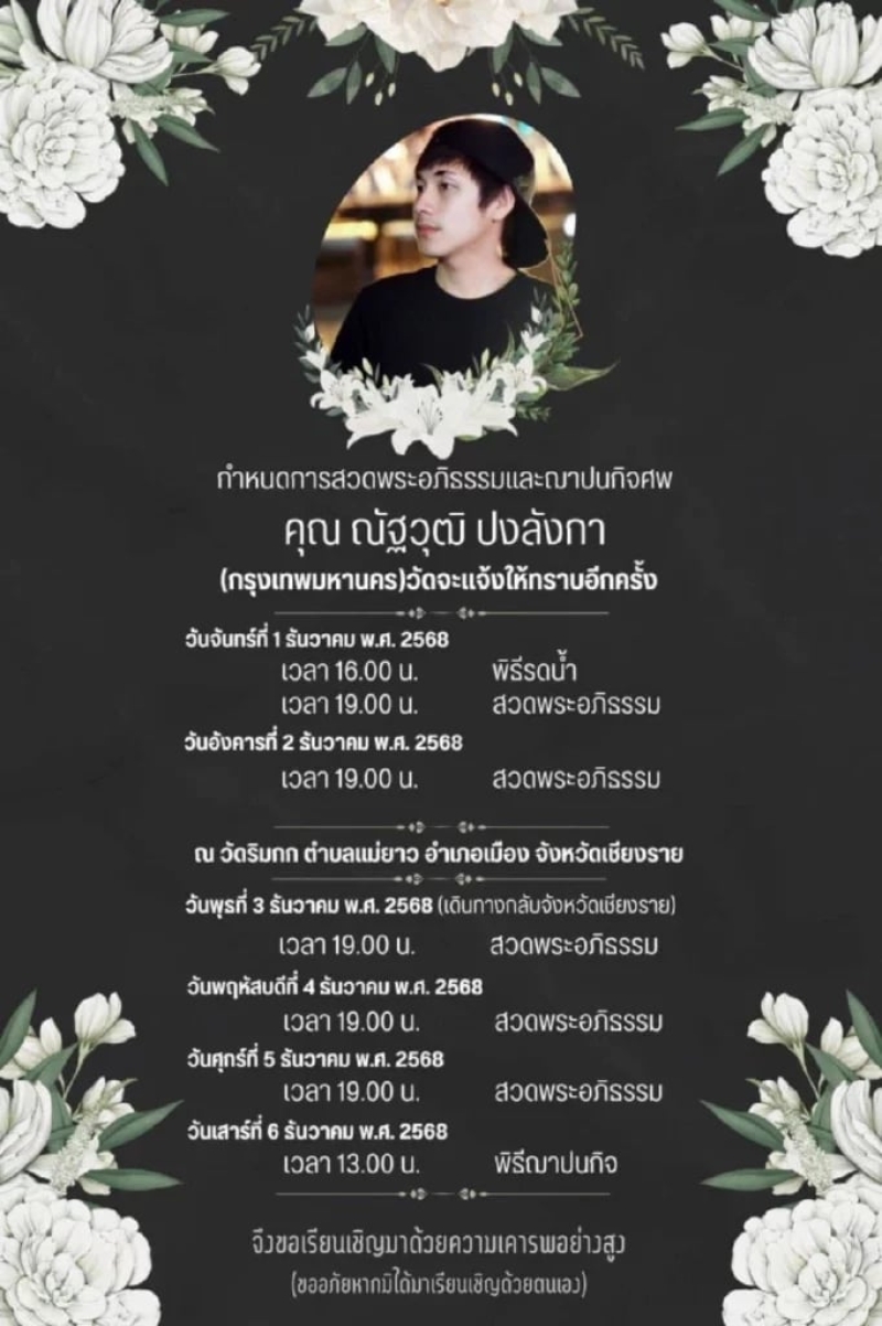 กำหนดการดังกล่าวเปิดโอกาสให้ญาติ เพื่อนร่วมงาน และผู้ที่เคารพนับถือเข้าร่วมไว้อาลัยและส่งดวงวิญญาณ ณัฐวุฒิ ปงลังกา อย่างสมเกียรติ