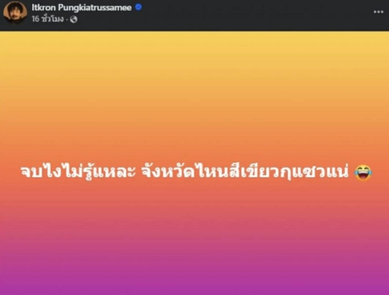 เรียกได้ว่า โลกออนไลน์คึกคักอีกครั้ง เมื่อ จ๋าย ไททศมิตร โพสต์ข้อความหลังการเลือกตั้งในเชิงหยอกล้อถึงจังหวัดที่ถูกมองว่าเป็น สีเขียว จนถูกตีความเชื่อมโยงทางการเมืองอย่างรวดเร็ว