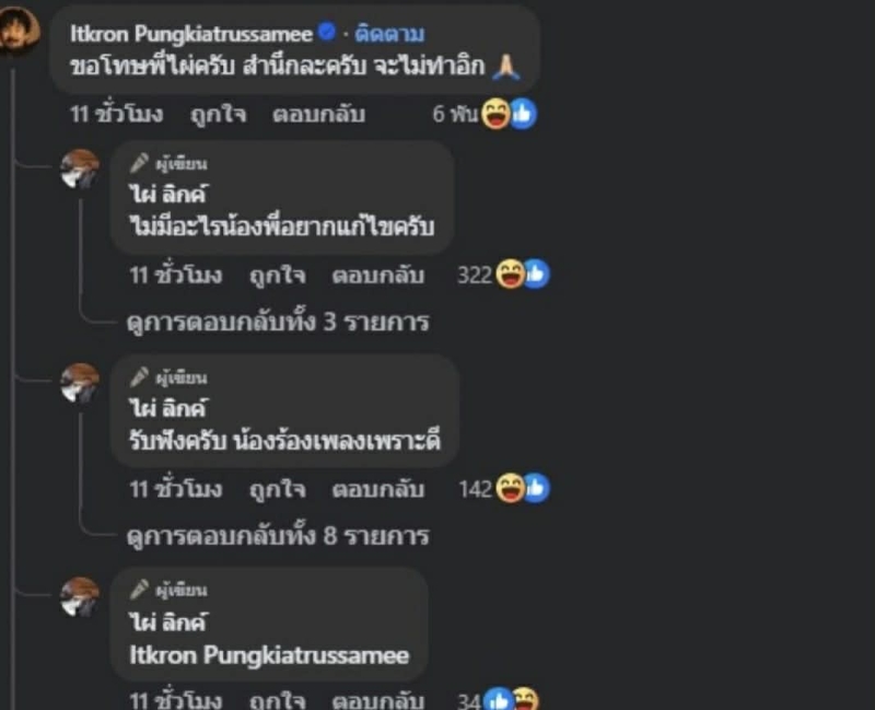 โดย จ๋าย ตอบด้วยถ้อยคำขอโทษ ขณะที่อีกฝ่ายยืนยันว่า ไม่ได้ติดใจ และเปิดกว้างต่อคำแนะนำ พร้อมกล่าวชื่นชมผลงานเพลงของจ๋าย