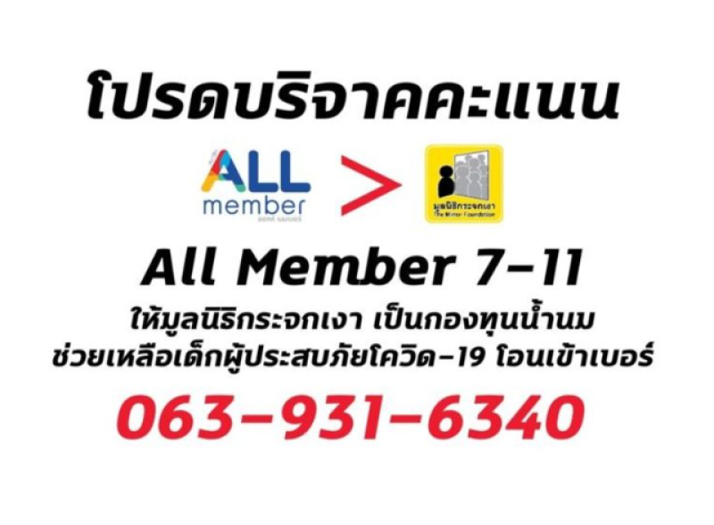 ซึ่งเจ้าของเบอร์ที่เป็นเจ้าของแต้มออลเมมเบอร์ 3.5 ล้านแต้มนี้ ไม่ใช่เจ้าของบัญชี X หากแต่ที่จริงแล้ว เวลาที่เขาซื้อของ เขาจะบอกเบอร์ 063-931-6340 ซึ่งเป็นเบอร์โทร. ของมูลนิธิกระจกเงา ที่ทางมูลนิธิได้ออกแคมเปญว่า หากใครที่เข้า 7-11 แต่ไม่ใช่สมาชิกออลเมมเบอร์ เมื่อซื้อของสามารถบอกเบอร์ของทางมูลนิธิได้ เพื่อที่มูลนิธิจะได้นำแต้มไปแลกนม ข้าวสาร อาหารแห้ง และอื่น ๆ ส่งต่อให้กับผู้ยากไร้ต่อไป