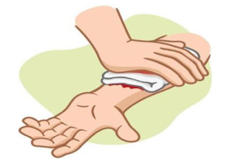 2. ห้ามเลือด โดยใช้มือกดนิ่ง ๆ ตรงบริเวณที่เลือดออกไว้ตลอดจะทำให้หลอดเลือดหดและสามารถห้ามเลือดได้