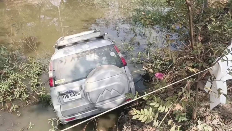 ที่เกิดเหตุถนนเส้นทางวัดพระธาตุจอมโพ้น เป็นทางเข้าไร่นาสวน พบรถยนต์ เก๋งsuv ยี่ห้อ ฟร์อด สีบรอนซ์เทา ทะเบียน กท 6056 เชียงราย มีลักษณะหน้ารถจมอยู่ขอบสระบริเวณข้างรถด้านประตูคนขับ พบร่างผู้เสียชีวิตเป็นชาย