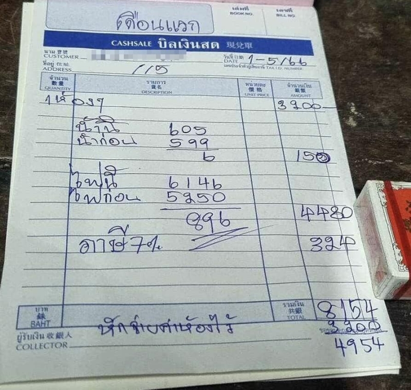 ทั้งนี้ ในใบเสร็จดังกล่าวลงวันที่ 1-5/66 อย่างไรก็ตาม เธอระบุว่า ได้ย้ายออกมาแล้ว แต่อยากเตือนผู้เช่ารายอื่น เพราะตอนแรกเธอไม่รู้ตัวว่าจ่ายแพงกว่าห้องอื่น แต่เมื่อห้องอื่นทักจึงรู้ว่าห้องอื่นมีแอร์ เปิดทุกวัน ค่าไฟยังจ่ายแค่ 400-500 บาทเท่านั้น
