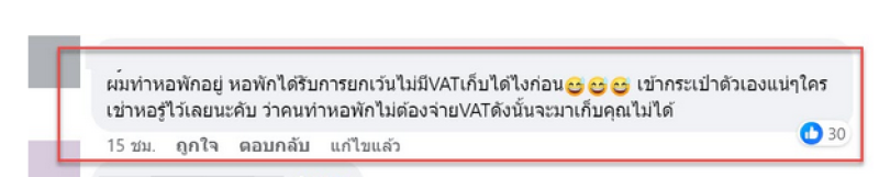 ผมทำหอพักอยู่ หอพักได้รับการยกเว้นไม่มีVATเก็บได้ไงก่อนเข้ากระเป๋าตัวเองแน่ๆใครเช่าหอรู้ไว้เลยนะคับ ว่าคนทำหอพักไม่ต้องจ่ายVATดังนั้นจะมาเก็บคุณไม่ได้
