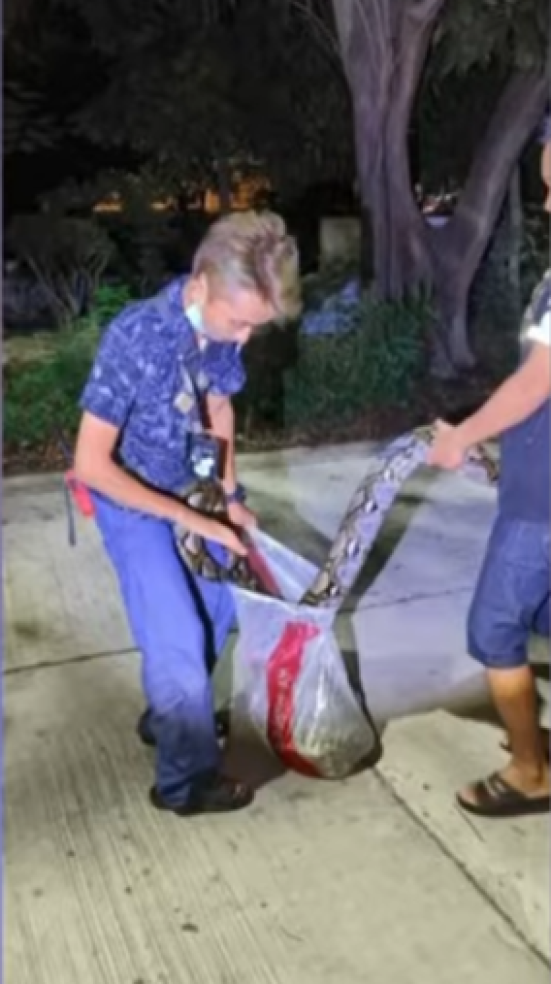 ณ ที่เกิดเหตุเป็นบ้านเดี่ยวเนื้อที่กว่า 100 ตารางวา ซึ่งเป็นบ้านของอดีตข้าราชการทหาร ทางอาสากู้ภัยได้ช่วยกันใช้อุปกรณ์จับงูเหลือมยาวเกือบ 5 เมตร ซึ่งงูเหลือมตัวดังกล่าวได้พยายามเลื้อยหนีและชูคอขู่ตลอดเวลา โดยใช้เวลาจับอยู่ประมาณ 15 นาที จึงสามารถจับใส่ถุงกระสอบได้ และเตรียมปล่อยคืนสู่ธรรมชาติบริเวณที่อยู่ห่างไกลบ้านเรือนต่อไป