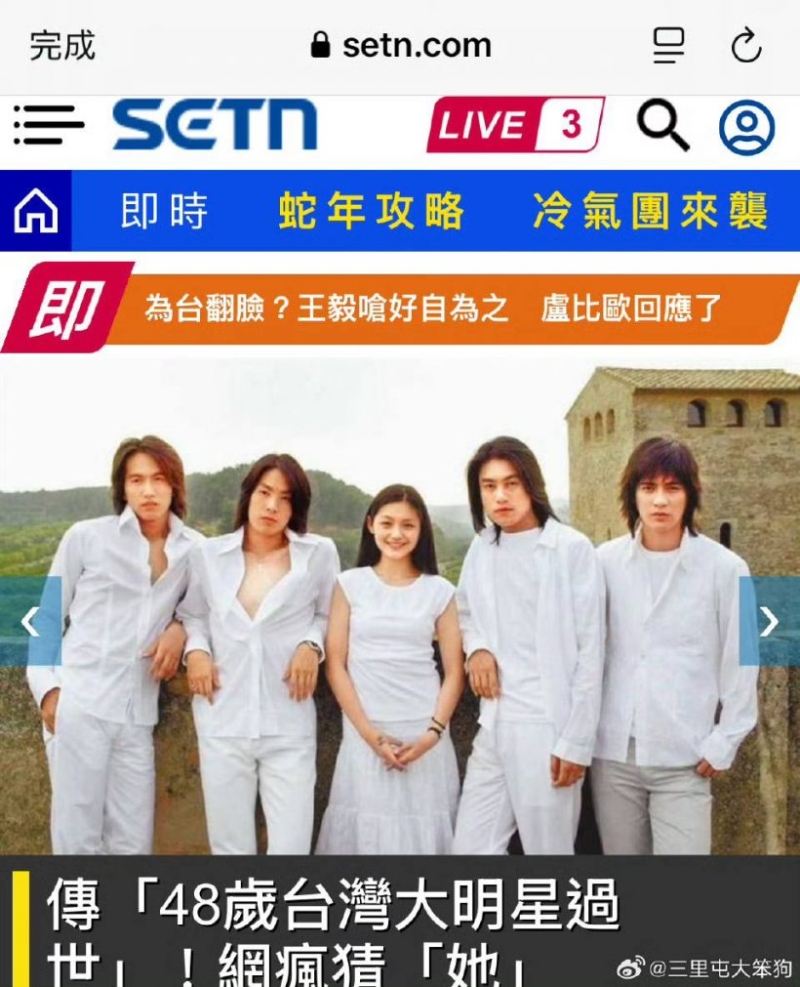 จากสื่อต่างประเทศ ได้รายงานว่า วงการบันเทิงไต้หวันต้องสะเทือน เมื่อเพจเฟซบุ๊ก นักเดินทางญี่ปุ่น ข้อมูลท่องเที่ยว ช้อปปิ้ง และอาหาร โพสต์เมื่อวันที่ 2 กุมภาพันธ์ว่า มีดาราดังชาวไต้หวันเสียชีวิต พร้อมใบ้ว่าเป็นนักแสดงหญิงจากยุค F4 รักใสใสหัวใจ 4 ดวง ที่แต่งงานกับชาวต่างชาติ ทำให้หลายคนคาดเดาว่าอาจหมายถึง ต้าเอส (สวีซีหยวน) อดีตนางเอกชื่อดัง