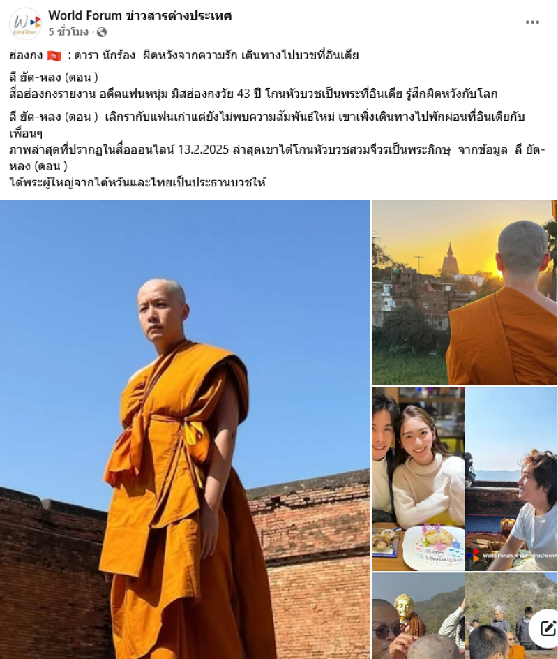 เรียกได้ว่าเป็นอีกหนึ่งนักร้องเเละนักแสดงหนุ่มดังชาวฮ่องกงสำหรับ ลี ยัต หลง (Don Li) ที่ล่าสุดทางด้านเพจเฟซบุ๊ค World Forum ข่าวสารต่างประเทศ ได้ออกมาโพสต์ ลี ยัต หลง (Don Li) โดยระบุว่า สื่อฮ่องกงรายงาน อดีตแฟนหนุ่ม มิสฮ่องกงวัย 43 ปี โกนหัวบวชเป็นพระที่อินเดีย หลังรู้สึกผิดหวังกับโลก ลี ยัต-หลง (Don Li)