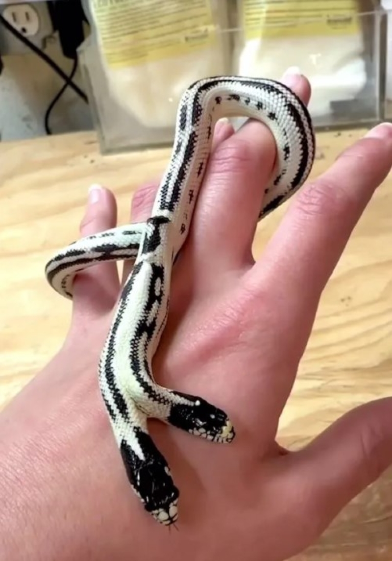จากสื่อต่างประเทศ ได้รายงานว่า ร้านขายสัตว์เลื้อยคลานในรัฐแคลิฟอร์เนียของสหรัฐอเมริกา สร้างความฮือฮาในโลกออนไลน์ หลังสามารถเพาะพันธุ์ “งูสองหัว” สายพันธุ์ California Kingsnake ได้สำเร็จ ซึ่งถือเป็นกรณีที่พบได้ยากมาก โดยมีโอกาสเกิดขึ้นเพียงหนึ่งในแสนเท่านั้น