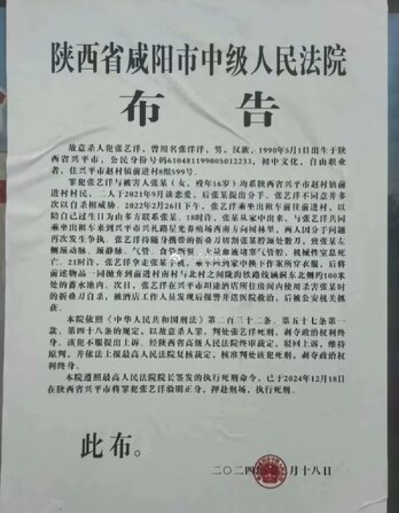 โดย ศาลเปิดเผยว่า จางอี้หยางถูกประหารชีวิตด้วยการยิงเป้า เมื่อวันที่ 18 ธันวาคม 2024 ขณะมีอายุ 33 ปี