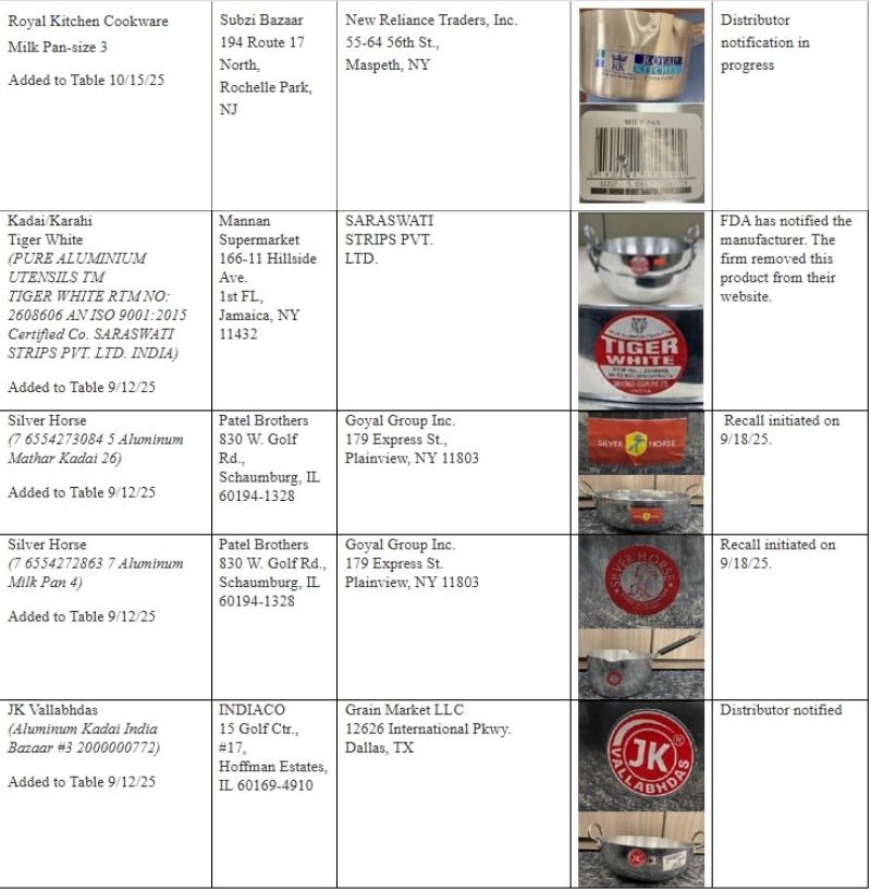 จากเว็บต่างประเทศ ได้เผยว่า องค์การอาหารและยาแห่งสหรัฐอเมริกา (FDA) ออกประกาศเตือนในเดือนสิงหาคม 2025 ว่ามีชุดเครื่องครัวนำเข้า บางรุ่นที่เมื่อใช้งานกับอาหาร อาจปล่อยตะกั่วลงสู่อาหารได้ ซึ่งอาจเป็นอันตรายต่อสุขภาพ โดยเฉพาะเด็กและหญิงตั้งครรภ์