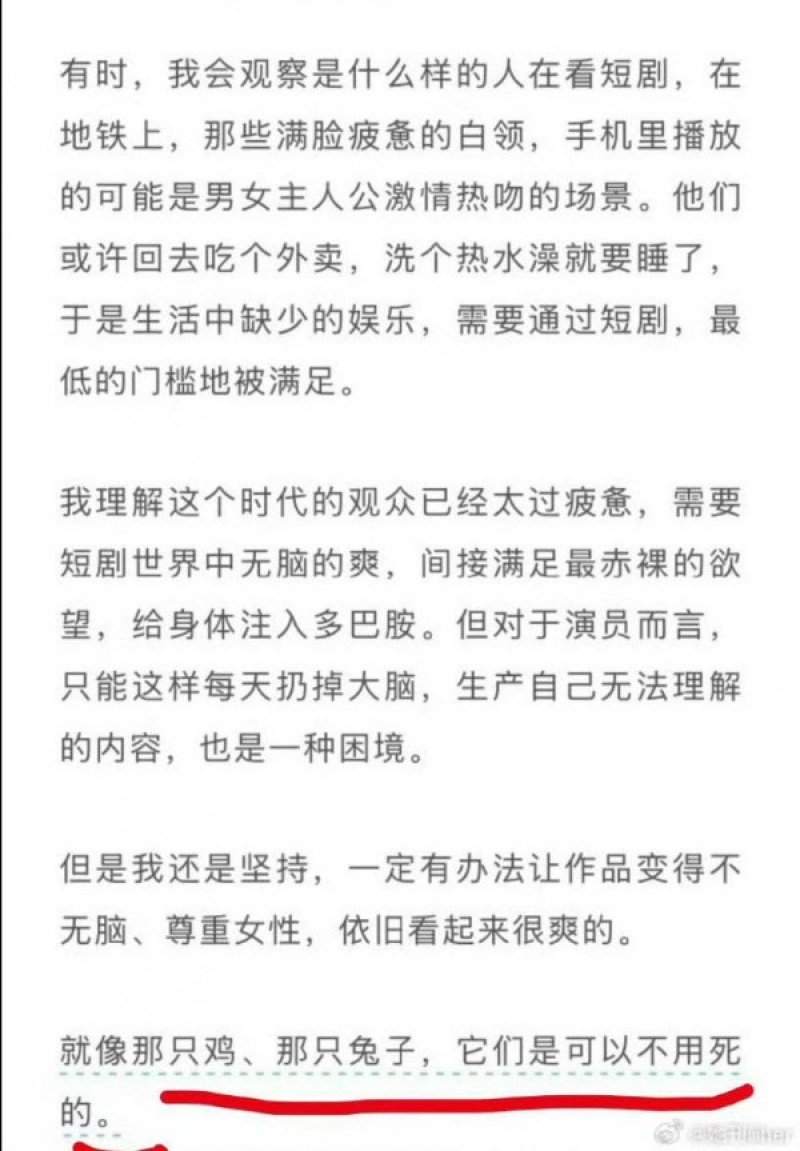 จากสื่อต่างประเทศ ได้มีการรายการว่า เหลยเสี้ยวอวี่ แฉกองถ่ายซีรีส์สั้นโหด ฆ่าไก่-กระต่ายจริง เพื่อความ สมจริง ทั้งที่ใช้งบไม่กี่สิบบาท นักแสดงสาว "เหลยเสี้ยวอวี่"ออกมาเล่าประสบการณ์สุดสะเทือน ใจจากกองถ่ายซีรีส์สั้น (Short Drama) ที่เลือก สังหารสัตว์จริงกลางกอง เพียงเพื่อให้ภาพ "สมจริง" และประหยัดต้นทุน ในอุตสาหกรรมที่ว่ากันว่าหมุนเงินกว่า 5 หมื่นล้านหยวนต่อปี