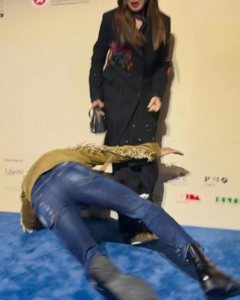 ผู้เห็นเหตุการณ์เล่าว่าเหตุเกิดขณะภรรยาของเขา กีกี (Qi Qi) กำลังโพสถ่ายรูปหน้าแบ็กดรอป เยิ่น ต๊ะหัวเดินเข้าไปยืนข้าง ๆ แล้วเสียหลักลื่นลงกับพื้น เขาใช้มือซ้ายค้ำพยุงตัว ก่อนจะกลิ้งและเด้งลุกขึ้นมายืนอย่างคล่องแคล่ว พร้อมโพสท่าอย่างมืออาชีพราวซูเปอร์ฮีโร่ จนผู้ชมยกให้เป็น “จังหวะฟื้นตัวแบบมาร์เวล” นักแสดงสาว Pat Ha และกีกีรีบเข้ามาช่วยเก็บแว่นและประคอง แต่เยิ่น ต๊ะหัวกลับตั้งหลักได้อย่างรวดเร็ว