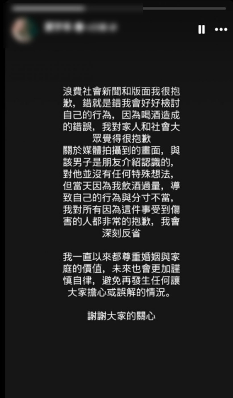 โดย ลูลู่ โพสต์ไอจีชี้แจง ยอมรับตรงๆ ว่ารู้จักกันผ่านเพื่อน แต่คืนนั้นดื่มหนักไปหน่อยเลยขาดสติทำเรื่องไม่เหมาะสม ขอโทษที่ทำให้ผิดหวัง ย้ำว่าจริงๆ ให้ความสำคัญกับสถาบันครอบครัวมาก จะจำไว้เป็นบทเรียน