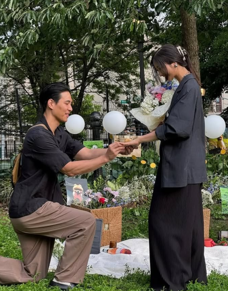 แซม คิม โปรดิวเซอร์หนุ่มเกาหลี-อเมริกันนั่นเอง ทั้งคู่เจอกันในห้องอัดตอนทำเพลงด้วยกันเมื่อปี 2017 สปาร์กกันยาวๆ จนหมั้นกันไปเมื่อปลายปี 2023 ส่วนงานแต่งจะจัดขึ้นที่สนามกอล์ฟหรูในลอสแอนเจลิส ซึ่งเป็นธุรกิจของครอบครัวฝั่งเจ้าสาวที่มีคุณแม่ ชิน ฮเยจิน รองประธานบริษัท เซยอง เอนเตอร์ไพรส์ คอยดูแลอยู่