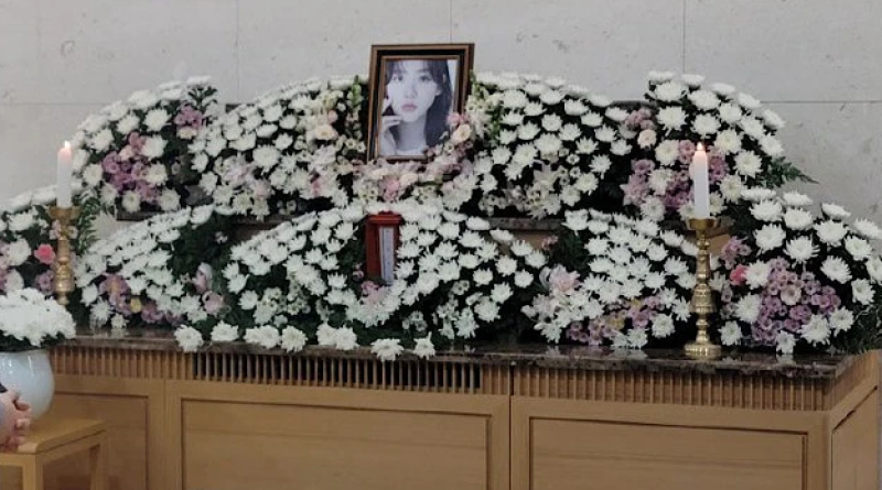 การจากไปครั้งสุดท้าย พิธีศพจัดขึ้นที่โรงพยาบาล Seoul Asan โดยมี ภาพของเธอกับแมวสองตัว .