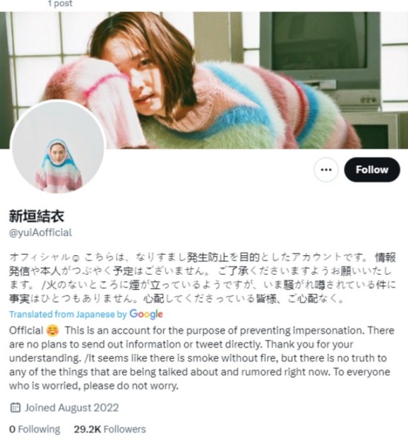 ล่าสุด ทางภรรยาอารางากิ ยูอิ ได้ออกมาพูดถึงประเด็นนี้แล้วผ่าน ไบโอบนแพลตฟอลร์ม X : yuiAofficial ว่า ดูเหมือนจะไม่มีมูลความจริง เกี่ยวกับข่าวลือที่ทุกคนกำลังพูดถึงในตอนนี้ ทุกคนอย่าได้เป็นกังวลไปนะคะ แม้จะเป็นข้อความสั้น ๆ แต่ก็อาจทำให้สิ่งที่หลายคนสงสัยชัดเจนมากยิ่งขึ้น