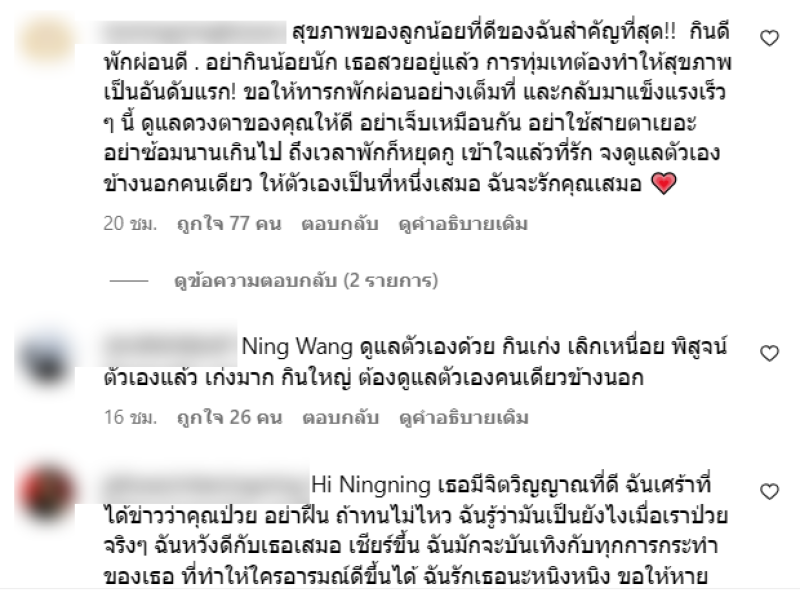 โดยในอินสตาแกรมของ หนิงหนิง Aespa นั้นได้มีแฟนๆเข้ามาคอมเมนต์และส่งกำลังใจให้จำนวนมาก