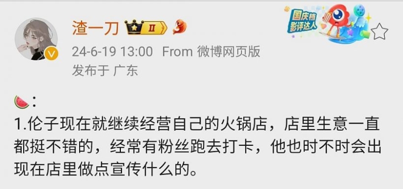 ล่าสุด มีเเฟนๆออกมาโพสต์อัปเดตชีวิตของเติ้งหลุนว่า เขายังคงเปิดร้านหมอไฟของตัวเองต่อไป ธุรกิจของเขากำลังดำเนินต่อไป เเฟนๆที่ได้ไปกินที่ร้านมักจะเห็นเขาปรากฎตัวเป็นครั้งคราวด้วยตอนนี้ทางร้านกำลังจัดโปรโมชั่นหรืออะไรสักอย่าง