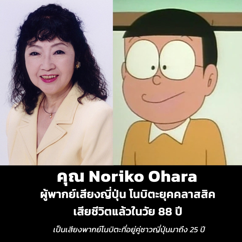 เรียกได้ว่า เป็นข่าวเศร้าของแฟนๆการ์ตูน โดเรม่อน เมื่อล่าสุดมีการรายงานว่า คุณ Noriko Ohara เจ้าของเสียงพากย์ญี่ปุ่นของ โนบิตะ ยุคคลาสสิกปี 1979 ได้เสียชีวิตลงด้วยวัย 88 ปี