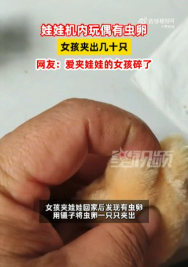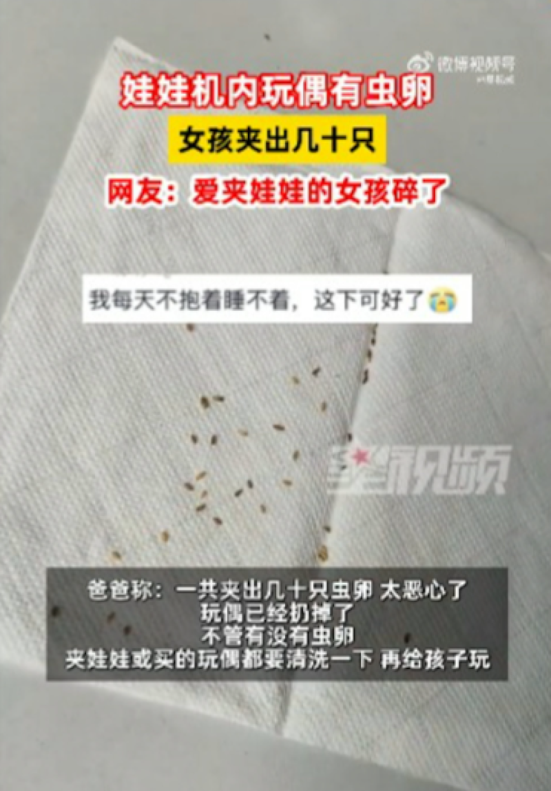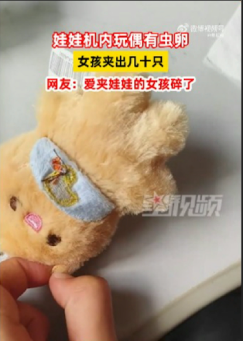 จากสำนักข่าวต่างประเทศ ได้รายงานว่า คุณพ่อรายหนึ่งพาลูกสาวไปเล่นเครื่องคีบตุ๊กตา และจับได้ตุ๊กตาหมีขนาดพอดีมือสีน้ำตาลขึ้นมาได้ แต่เมื่อพวกเขานำตุ๊กตากลับบ้าน พบว่ามีบางอย่างผิดปกติ มีจุดสีดำอยู่บนตัวตุ๊กตา ซึ่งจริง ๆ แล้วเป็นไข่แมลงที่ซ่อนอยู่ในขนของตุ๊กตา ซึ่งฝ่ายลูกสาวได้ใช้แหนบตรวจสอบและคัดแยกไข่แมลงออกจากขนของตุ๊กตาจนได้ทั้งหมดหลายสิบฟอง