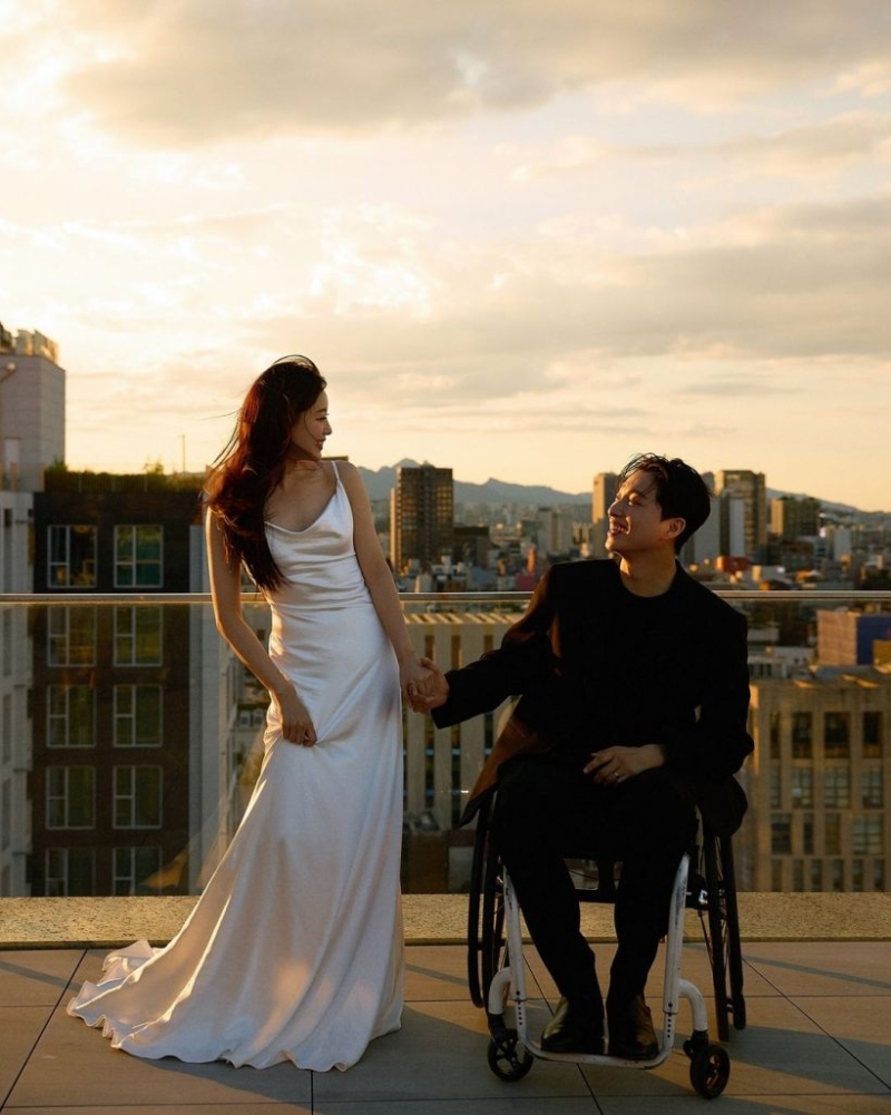ในภาพ ซงจีอึนอยู่ในชุดแต่งงานสีขาวบริสุทธิ์ ในขณะที่พัควีสวมชุดทักซิโด้อย่างหรูหรา ทั้งสองมีกำหนดจะแต่งงานกันในเดือนตุลาคมนี้ หลังจากยืนยันความสัมพันธ์ของพวกเขาเมื่อเดือนธันวาคมปีที่แล้ว