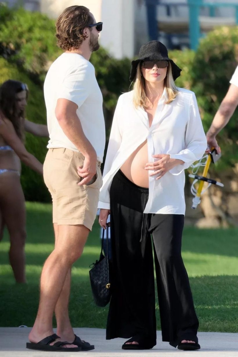 โดย Margot กำลังตั้งท้องทายาทคนเเรกและกำลังสนุกอยู่กับการใช้ชีวิตเเบบชิลๆเตรียมตัวต้อนรับลูกน้อยที่ใกล้จะลืมตาดูโลกในเร็ววันนี้ ถึงเเม้ว่าเธอกำลังตั้งท้องอยู่ในตอนนี้เเต่ก็ไม่ทำให้เทสเเฟชั่นการเเต่งตัวของเธอนั้นลดลงเลย ซึ่งลุคนี้เธอสวมใส่เป็นเสื้อเชิตสีขาวปลดกระดุมโชว์ท้องใหญ่ๆ เเละสวมใส่กางเกงสีดำขายาวดูสบายๆ