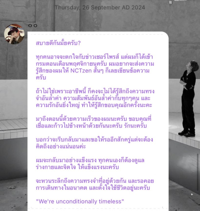 ขณะเดียวกัน แจฮยอน ก็ได้ออกมาโพสต์แจ้งข่าวกับแฟนๆ ทันทีว่า ผมอาจจะบอกว่าผมจะกลับมาเร็วๆ นี้ และรอสักหน่อย แต่ผมแน่ใจว่าผมจะคิดถึงคุณครับ ผมจะกลับมาอย่างปลอดภัย ดังนั้นทุกคนต้องดูแลตัวเองทั้งร่างกายและจิตใจด้วยนะครับ ผมจะใช้ชีวิตแต่ละวันด้วยการรำลึกถึงความทรงจำที่เราเคยร่วมกันและตั้งตารอการเดินทางที่เราจะมีร่วมกันในอนาคต