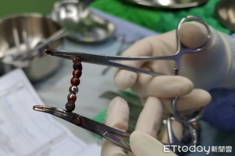 โดย แพทย์จึงรีบจัดตรวจเอ็กซ์เรย์ช่องท้องทันที และพบว่า บัคกี้บอล หรือ ลูกปัดแม่เหล็ก โดยบัคกี้บอลทั้ง 10 เม็ดได้ติดกันเป็นพวง จนทะลุลำไส้และเกิดภาวะเยื่อบุช่องท้องอักเสบ