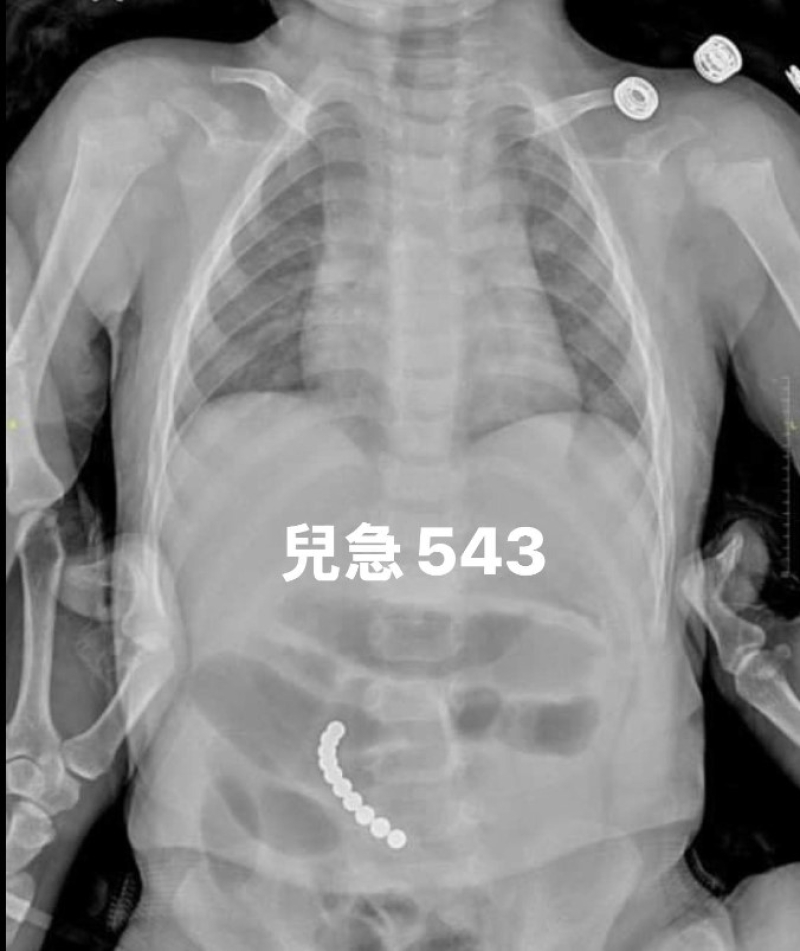 หลังจากที่ทีมแพทย์ช่วยกันควบคุมสัญญาณชีพของเด็กให้คงที่แล้ว ได้ทำการตรวจเอกซเรย์ช่องท้อง และพบว่า เป็นบัคกี้บอลอีกแล้ว จำนวนถึง 10 เม็ด
