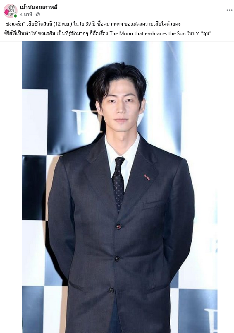 ซงแจริม เสียชีวิตวันนี้ (12 พ.ย.) ในวัย 39 ปี ช็อคมากๆๆๆ ขอแสดงความเสียใจด้วยค่ะ ซีรีส์ที่เป็นทำให้ ซงแจริม เป็นที่รู้จักมากๆ ก็คือเรื่อง The Moon that embraces the Sun ในบท อุน
