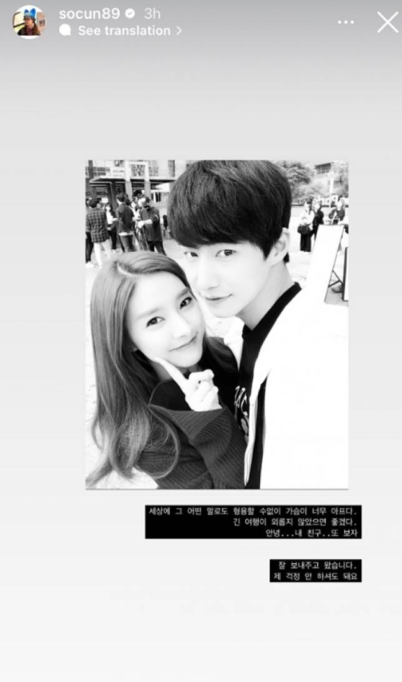 ท่ามกลางความโศกเศร้าของครอบครัวเเละบรรดาแฟนคลับสำหรับการจากไปของพระเอกหนุ่ม ซงแจริม ได้จากไปในวัย 39 ปี ล่าสุดทางด้านนักแสดงสาว คิมโซอึน อดีตคู่จิ้นของ ซงแจริม ได้โพสต์ภาพพร้อมข้อความถึง ซงแจริม ผู้เป็นทั้งเพื่อนร่วมงาน และยังสนิทกันมาอย่างยาวนาน ผ่านทาง อินสตราแกรมส่วนตัว ส่วนตัว พร้อมข้อความว่า
