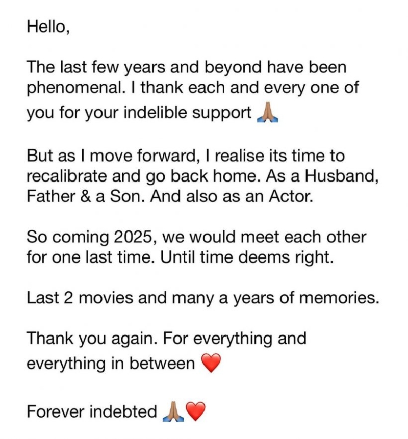 เรียกได้ว่า ทำเอาแฟนๆใจหายเพียบ เมื่อ วิกรานต์ มัสซีย์ นักแสดงอินเดียชื่อดัง ออกมาประกาศผ่านอินสตราแกรมว่าเขาจะถอยห่างจากวงการบันเทิงหลังปี 2025 โดยข้อความที่เขาโพสต์ระบุว่า หลายปีที่ผ่านมาเป็นช่วงเวลาที่ยอดเยี่ยม และขอขอบคุณทุกคนที่ให้การสนับสนุนอย่างไม่รู้ลืม แต่ตอนนี้ถึงเวลาที่ต้องปรับตัวและกลับบ้านในฐานะสามี พ่อ และลูก รวมถึงในฐานะนักแสดง