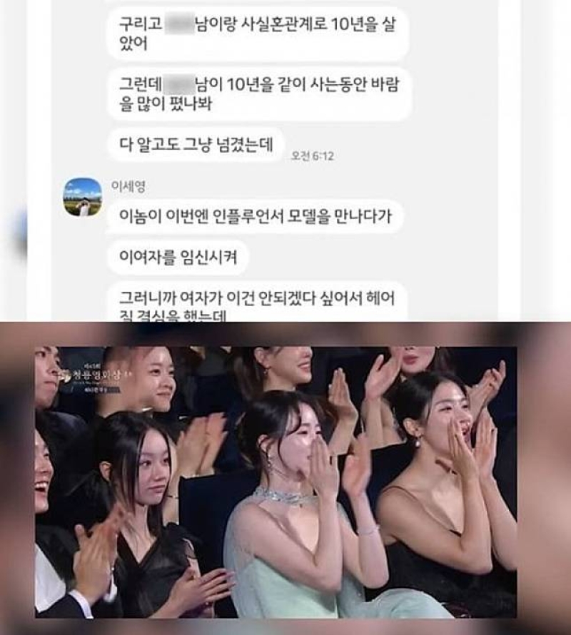 โดยกล่าวหาว่านักบัญชีหญิงคนหนึ่งที่ถูกเรียกว่า B มีความสัมพันธ์กับจองอูซองมานานกว่า 10 ปี และยังเล่าต่อว่าเธอได้หย่ากับสามีหลังพบจองอูซอง นอกจากนี้ ยังมีการกล่าวหาว่าความสัมพันธ์ดังกล่าวเต็มไปด้วยปัญหา หลังจองอูซองมีข่าวลือเรื่องนอกใจไปคบกับโมเดลสาว มุนกาบี ซึ่งมีรายงานว่าเธอกำลังตั้งครรภ์ โดยเขายืนยันว่าข่าวลือดังกล่าวเป็นเพียงเรื่องแต่ง