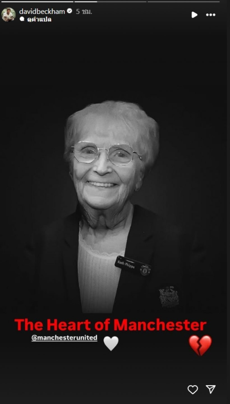 จากกรณี David Beckham นักเตะชื่อดัง ได้โพสต์ข้อความไว้อาลัยถึง Kath Phipps พนักงานต้อนรับประจำสโมสรที่เสียชีวิตในวัย 85 ปี