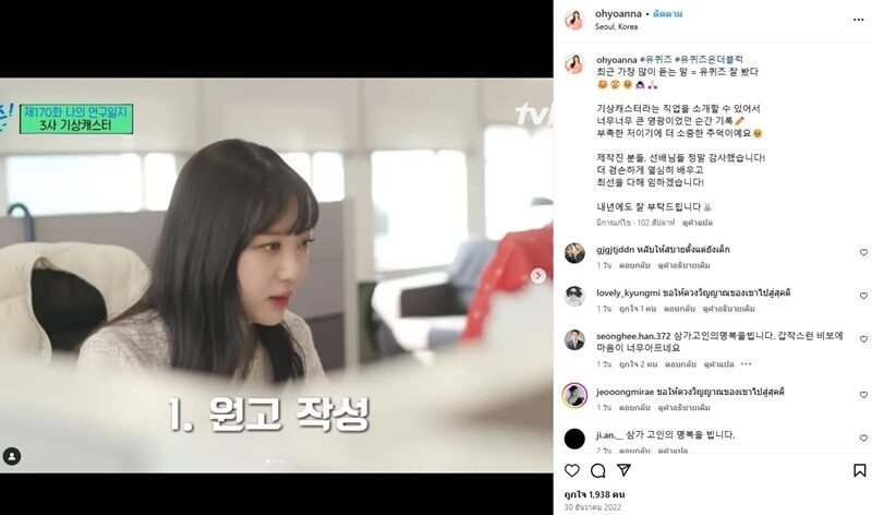 ลังจากร่วมรายการ โยอันนา ได้โพสต์ข้อความผ่านทางอินสตาแกรมส่วนตัวว่า “ฉันกำลังบันทึกช่วงเวลาที่เป็นเกียรติ อย่างยิ่ง ในการทำหน้าที่ผู้ประกาศข่าวพยากรณ์อากาศ” พร้อมทั้งขอบคุณทีมงานและรุ่นพี่
