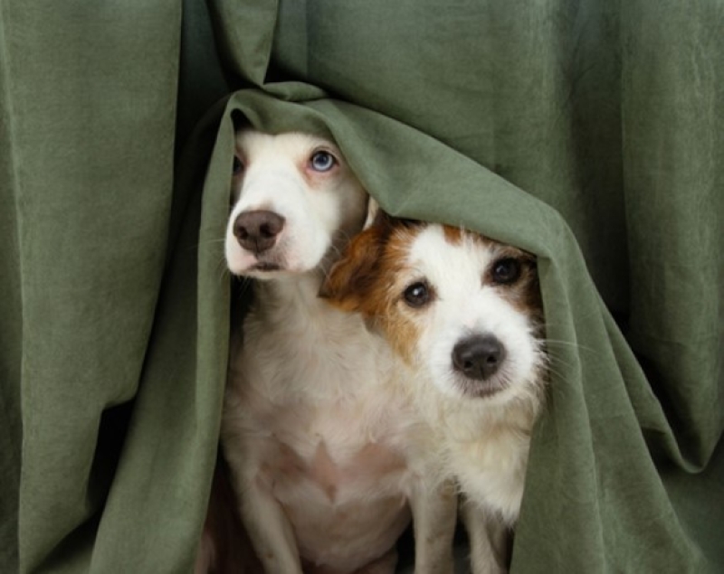 3. นอกจากกลัวเสียงแล้ว ก็ยังกลัวแสงด้วย แสงวิบๆ วับๆ ทำให้น้องหมาแมวเครียดสติแตกได้ ฉะนั้นควรปิดม่าน ปิดหน้าต่างไม่ให้แสงเข้า หรือให้น้องหมาแมวอยู่ในกรงแล้วเอาผ้าคลุมกรงก็ช่วยได้