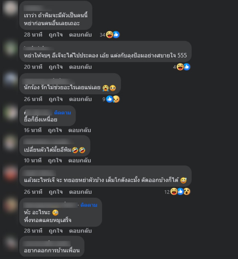 โดยเขียนโพสต์ว่า อ่อ.. เขาเกียมหย่ากันเร็วๆนี้แหละ รอเอกสารแปปปปปนะนะเมิ้งงง ... ท่ามกลางชาวเน็ตเข้ามาคอมเมนต์กันอย่างมาก อาทิ น...อ หราา,อย่าบอก นักร้อง 90 นะ,ทำไม นึกถึงนักร้องหญิงยุค 90,1. นักร้อง 90 2. เจ้าหญิงลูกเจี๊ยบ เป็นต้น