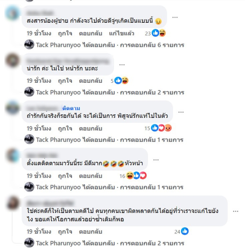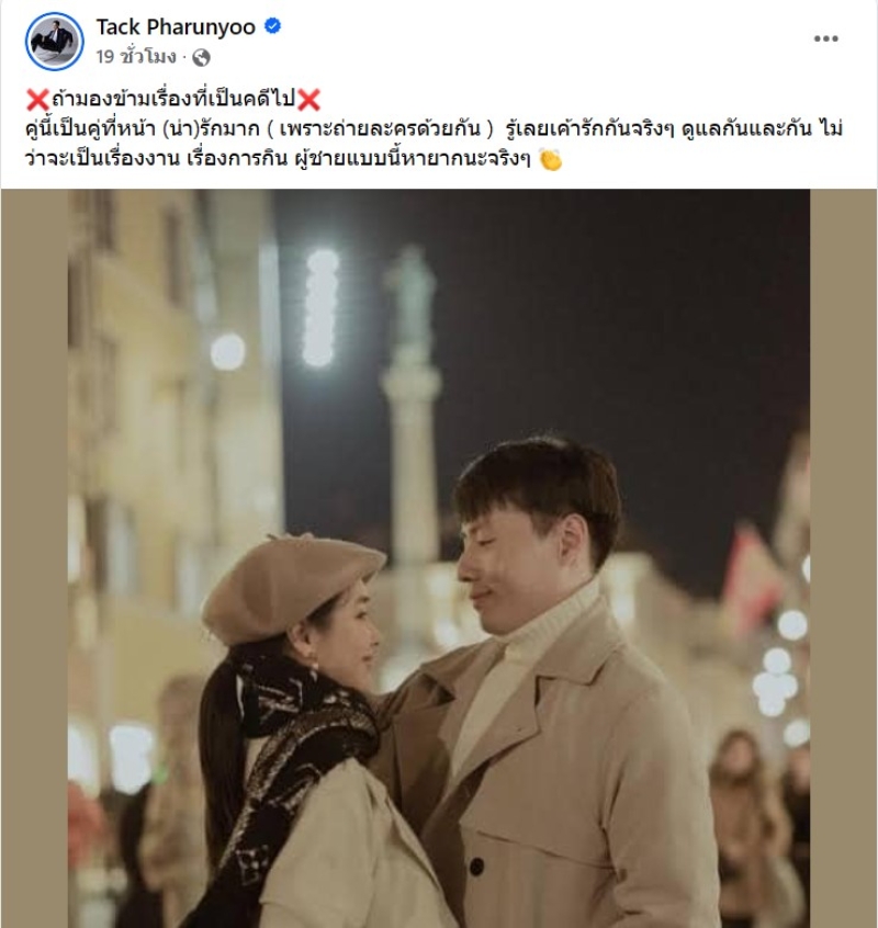 ล่าสุด ด้านดาราหนุ่ม แทค ภรัณยู ได้ออกมาโพสต์ถึงแฟนหนุ่มของมิน เล่าถึงเบื้องหลังว่า ถ้ามองข้ามเรื่องที่เป็นคดีไป คู่นี้เป็นคู่ที่หน้า (น่า)รักมาก ( เพราะถ่ายละครด้วยกัน ) รู้เลยเค้ารักกันจริงๆ ดูแลกันและกัน ไม่ว่าจะเป็นเรื่องงาน เรื่องการกิน ผู้ชายแบบนี้หายากนะจริงๆ