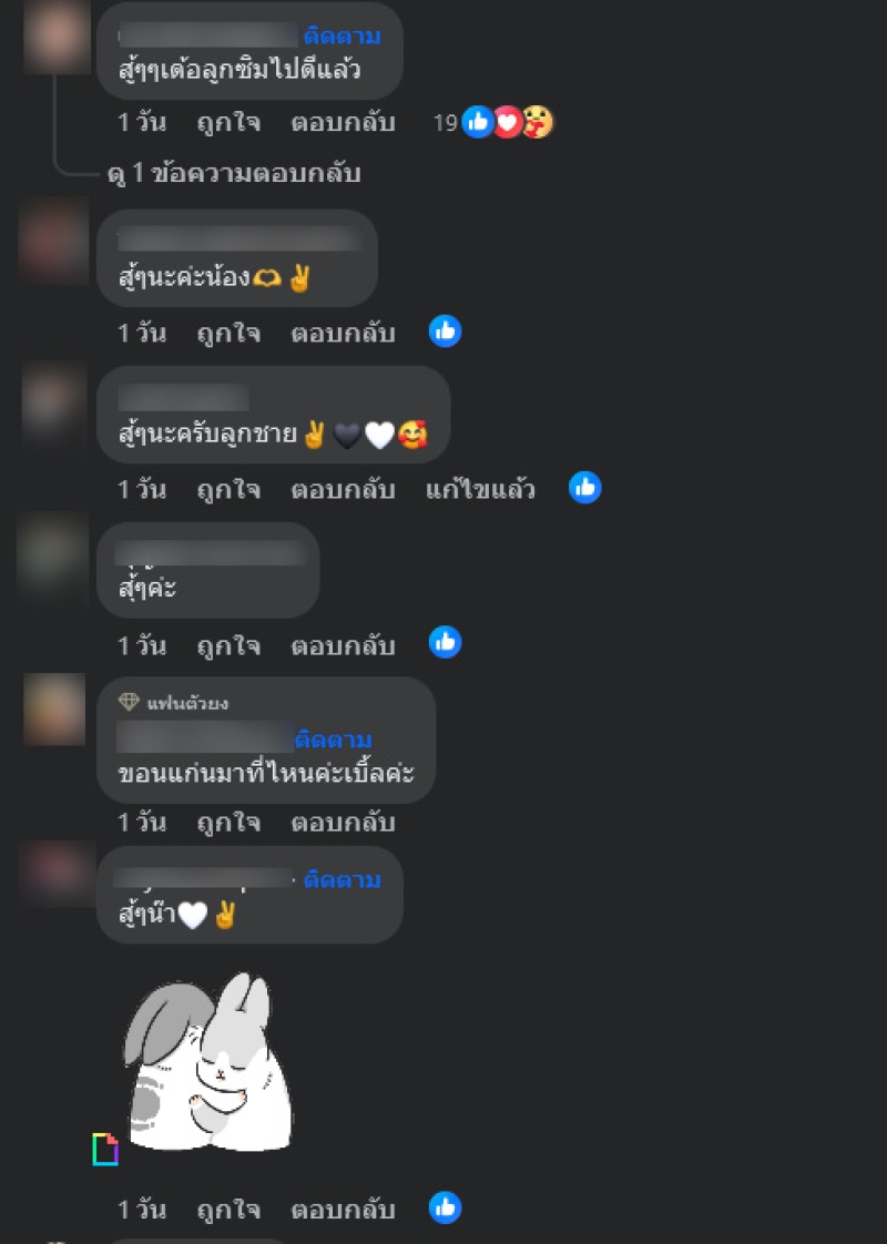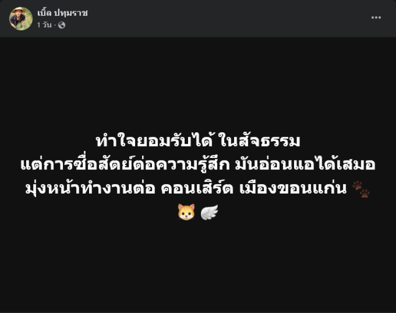 พร้อมทั้งยังโพสต์ข้อความต่ออีกว่า ทำใจยอมรับได้ ในสัจธรรม แต่การซื่อสัตย์ต่อความรู้สึก มันอ่อนแอได้เสมอ มุ่งหน้าทำงานต่อ คอนเสิร์ต เมืองขอนแก่น ท่ามกลางแฟนๆต่างส่งกำลังใจกันอย่างมาก อาทิ สู้ๆๆเด้อลูกซิมไปดีแล้ว,สู้ๆนะครับลูกชาย,สู้ๆนะครับ กำลังใจน๊าาาา เป็นต้น
