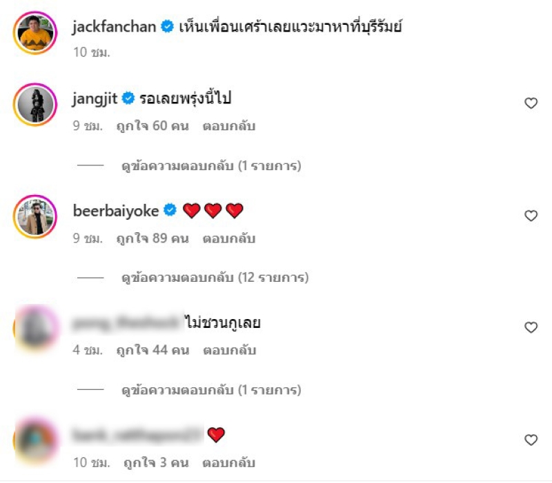 จากกรณีที่ก่อนหน้านั้น ได้มีประเด็นข่าวเกี่ยว นิกกี้ ณฉัตร กับเปียโน ที่ออกมาจบความสัมพันธ์ของทั้งคู่ลง แต่ก็ไม่วายว่าทั้งคู่นั้น ก็โดยทัวร์ลงเช่นกัน ล่าสุด ทางเพื่อนรัก อย่าง แจ็ค แฟนฉัน ที่ได้ไปให้กำลังใจเพื่อนรัก โดยได้โพสต์ผ่านทางอินสตาแกรม ว่า เห็นเพื่อนเศร้าเลยแวะมาหาที่บุรีรัมย์
