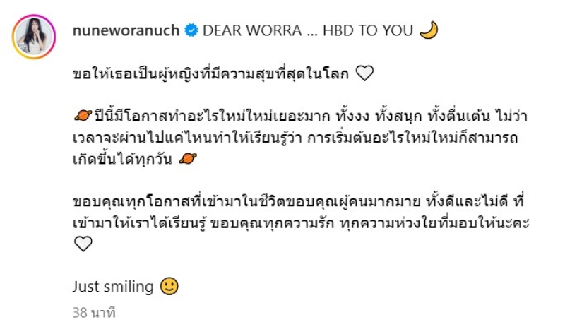 นุ่น วรนุช โพสต์ภาพพร้อมข้อความสุดซึ้ง ในวันเกิดตัวเอง ครบรอบ 45 ปี คนในวงการร่วมอวยพรเพียบ