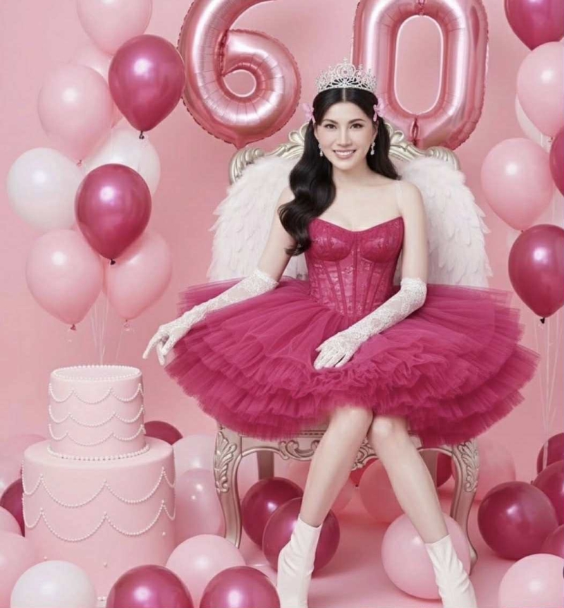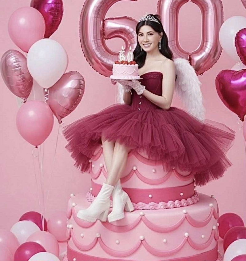 โดย ภาพดังกล่าว เธอ ถือเค้กก้อนใหญ่ มีเทียนเลข 60 ประดับอยู่ ทำให้หลายคนที่เห็นต่างพูดเป็นเสียงเดียวกันว่า เธอ ดูเด็กลงมากๆ