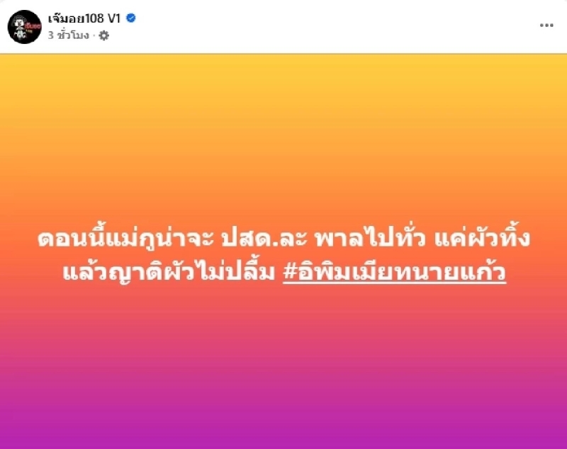 ต่อด้วย ตอนนี้แม่กูน่าจะ ปสด.ละ พาลไปทั่ว แค่ผัวทิ้ง แล้วญาติผัวไม่ปลื้ม #อิพิมเมียทนายแก้ว